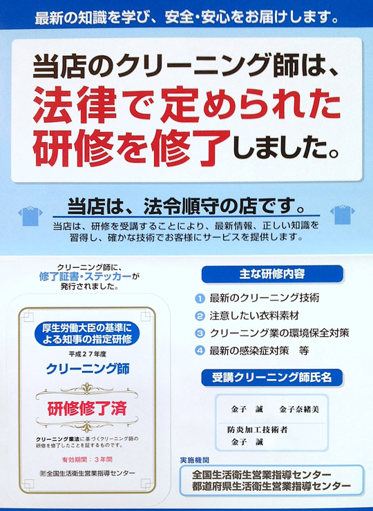 『厚生労働大臣の基準による知事の指定研修』を修了した法令遵守の会社です。