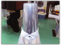 洗いから上がったワイシャツを濡れた状態でワイシャツボディに着せて、温風で一気に乾かします。